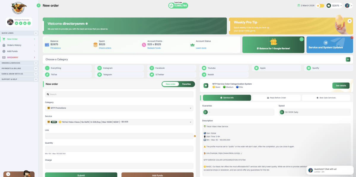 MoreThanPanel isn’t trying to be subtle. It bills itself as the cheapest and easiest SMM panel, but behind the marketing jargon is a massive London-based operation with over 229,000 users. It works essentially as an automated clearinghouse. You deposit funds, pick a service from their list, and the API routes your request to a network of resellers or specialized networks. My take is that it is a high-volume utility. With roughly 34,000 orders moving through the pipes daily, the system is clearly built for scale rather than boutique hand-holding. They lean heavily on their 4.8 rating and a team that actually puts their names and faces on the story page. That is a rarity in an industry where most owners prefer to stay in the shadows. The dashboard is clean. The free test balance for resellers is a smart move to prove they aren’t just selling vaporware. It is practical and built for people who know exactly what they want.