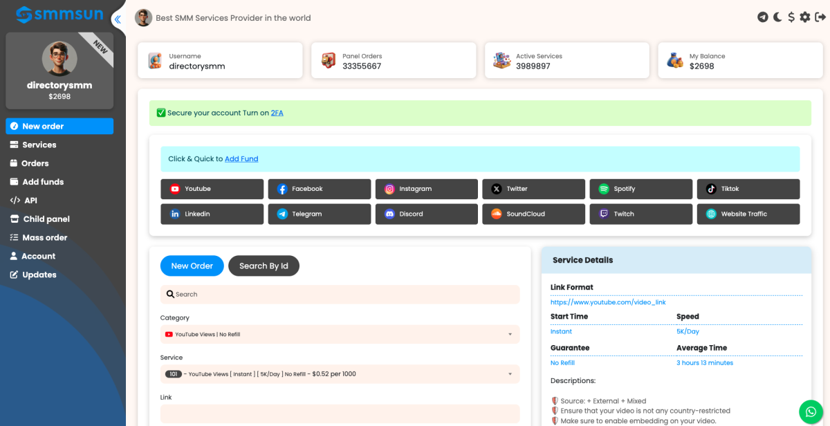 When looking at the SMM panel market, SMMSun stands out as a high-volume, budget-focused provider based in Bangladesh that has recently made a major push into the global market. With over 3.3 million completed orders and nearly 70,000 active users, it operates as a massive engine for social proof. The platform covers the usual suspects—Facebook, Instagram, and TikTok—but also offers niche services for LinkedIn and SoundCloud. What is interesting here is the pricing; it is clearly positioned as one of the cheapest options available. My experience with panels at this price point is that they are perfect for raw amplification, like boosting a YouTube video’s view count or getting a dormant Facebook page to look active. They use a standard four-step workflow: sign up, pick a plan, pay, and track. It is functional and fast.